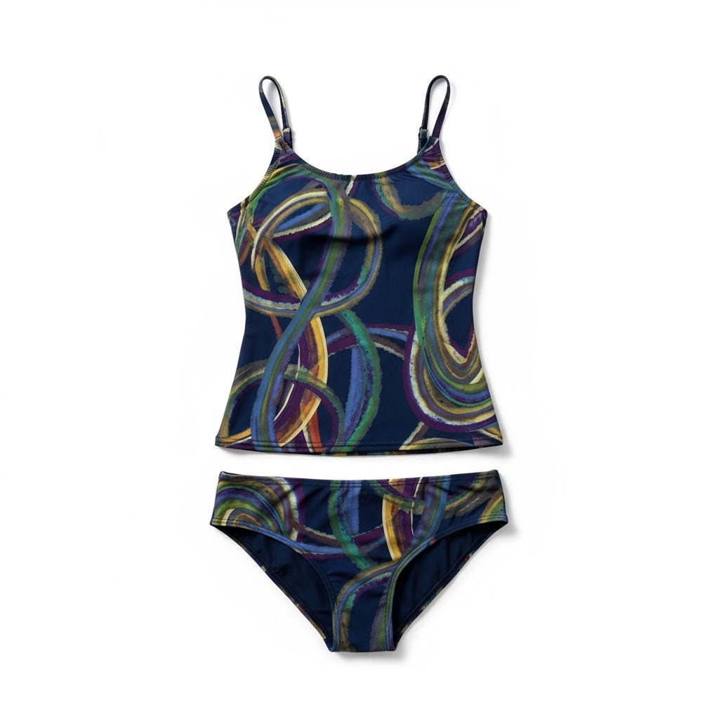 A classic string tankini top paired with a matching brief bottom, designed for comfort, coverage, and an easy, flattering fit.