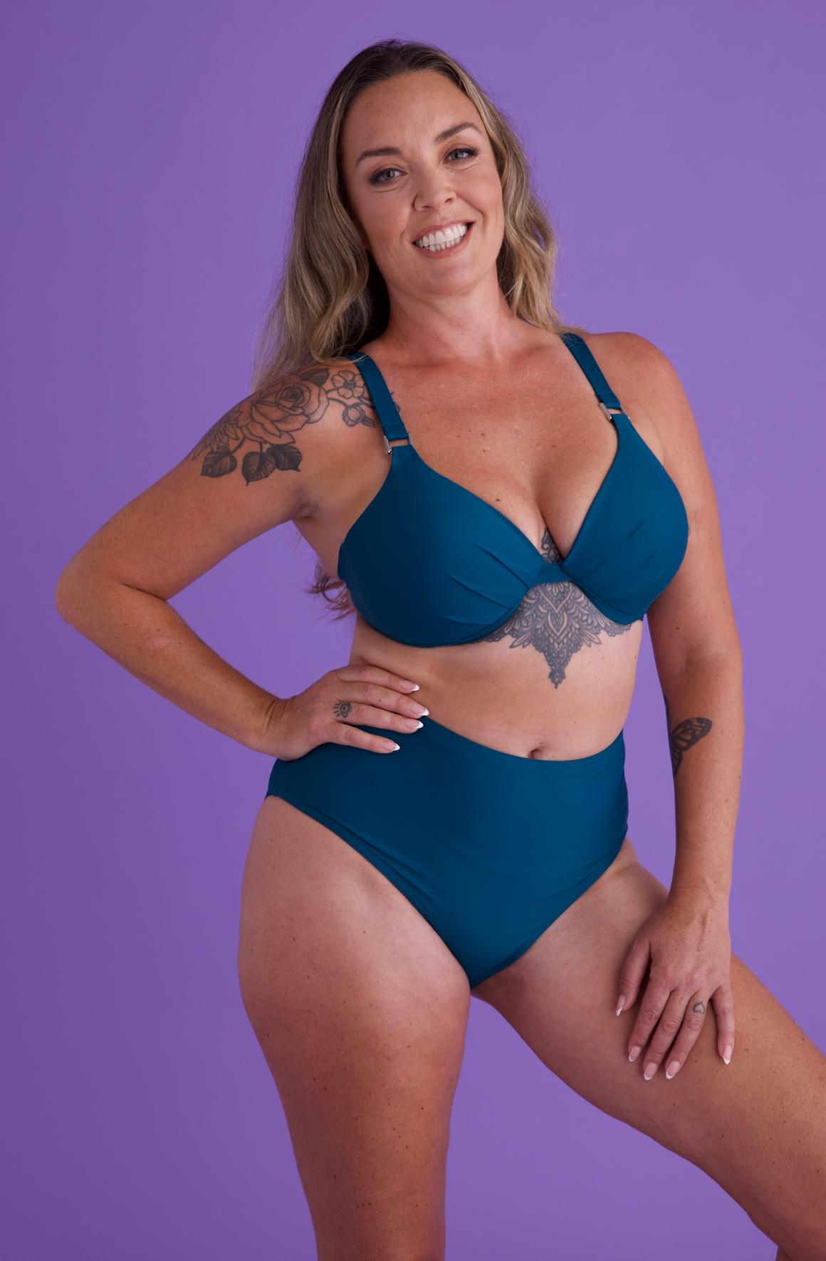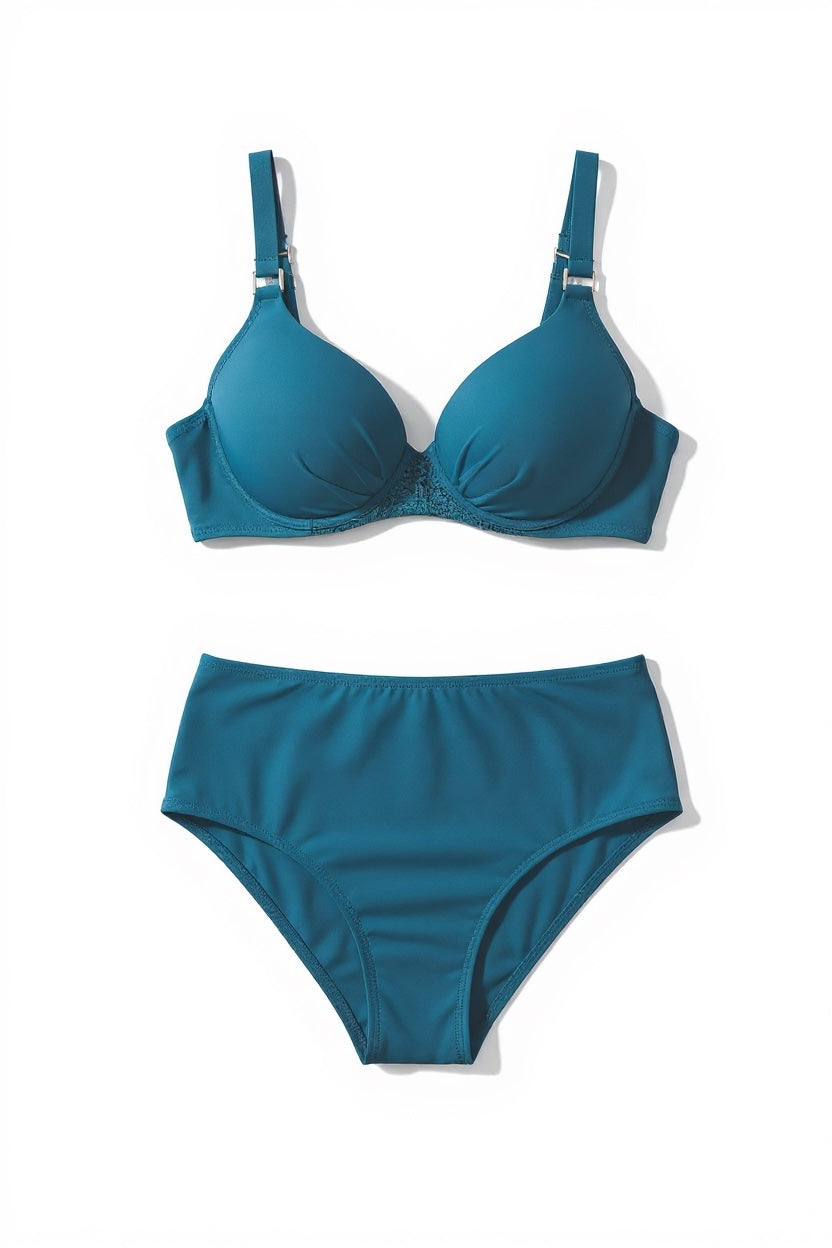 Finished in a luxurious teal tone, this set is ideal for swimming, lounging, and resort days when you want support, elegance, and effortless style.