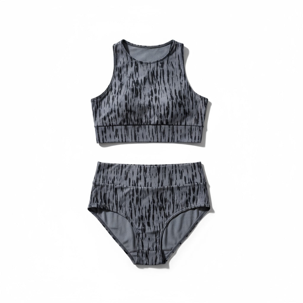Graphite Wave High Collar Sport Tank with High Cut Waistband Bottom